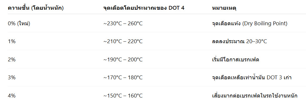 ทุกๆ ความชื้น 1% ในน้ำมันเบรก